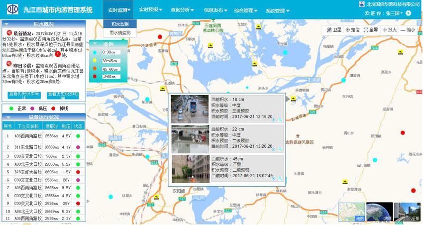 積水信息化監(jiān)測(cè)系統(tǒng)是對(duì)雨量站、水位站監(jiān)測(cè)設(shè)備進(jìn)行統(tǒng)一管理的綜合管理系統(tǒng),內(nèi)容包括站點(diǎn)設(shè)備管理、站點(diǎn)設(shè)備控制、站點(diǎn)數(shù)據(jù)采集、站點(diǎn)設(shè)備維護(hù)、數(shù)據(jù)分析和展示、站點(diǎn)報(bào)警提示等。通過(guò)GRPS等方式進(jìn)行傳輸至平臺(tái)。